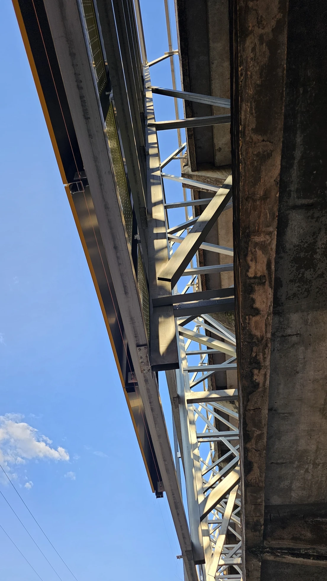 Detalhe da estrutura principal (aço magnélis), estrutura auxiliar (alumínio) e painéis de ACM da fachada em execução. Foto: Johnny Architecture