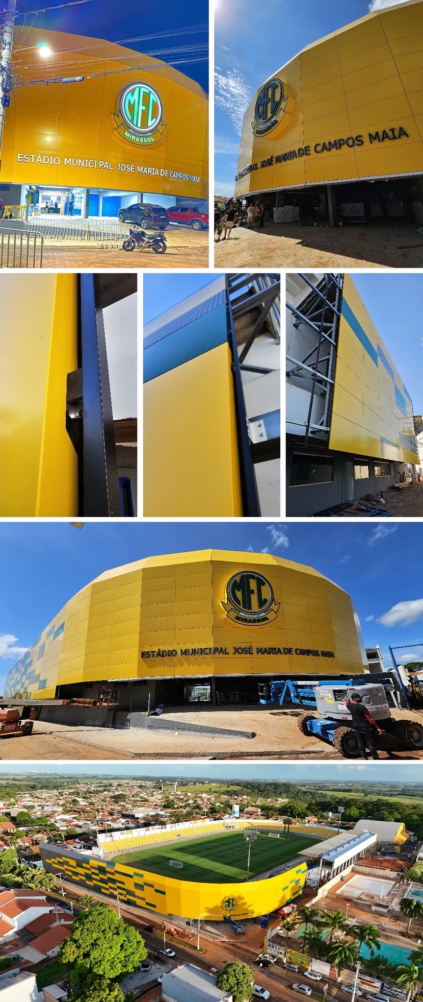 Incríveis 60 dias separam a concepção do projeto arquitetônico da inauguração da fachada. Essa conquista notável foi fruto de um intenso trabalho de equipe, reunindo empresas experientes em regime de turnos estendidos e sem margem para falhas. O desafio, de proporções gigantescas, foi superado com sucesso graças à sinergia de diversos elementos: desde as condições climáticas favoráveis até a impecável logística de fornecedores e a determinação do Mirassol FC em tornar o objetivo uma realidade.