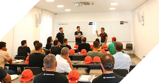 This course is designed for installers seeking technical development, from theory to practice on ACP, regardless of prior experience. The course is held monthly and lasts three days, with classes of up to 30 students. It is taught at the Móduly Training Center, located at the ProjetoAlumínio factory.