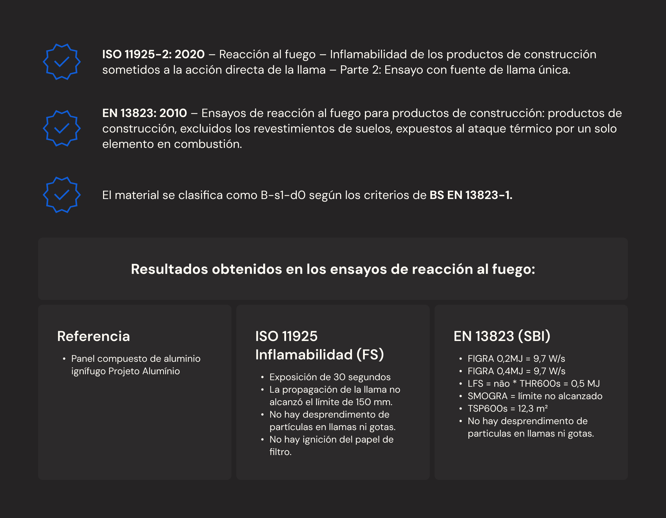 Su composición incluye aluminio prepintado y un núcleo mineral modificado (FR – Retardante al Fuego).