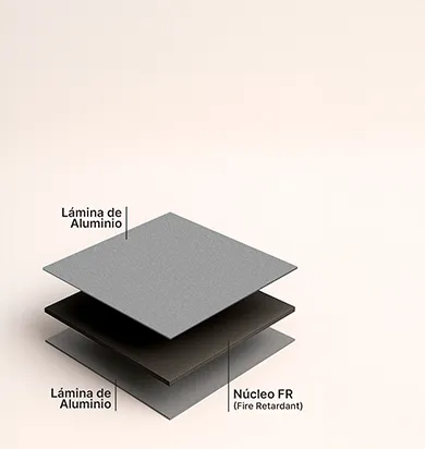 Panel compuesto por dos láminas de aluminio y un núcleo desarrollado con polietileno, minerales y aditivos retardantes de llama. Ideal para proyectos que requieren alta resistencia al fuego y cumplimiento de las normas internacionales de seguridad.