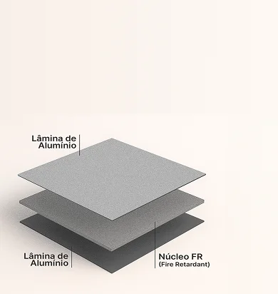 Painel composto por duas lâminas de alumínio e núcleo desenvolvido com polietileno, minerais e aditivos retardantes de chama. É indicado para projetos que exigem elevada resistência ao fogo e conformidade com normas internacionais de segurança.